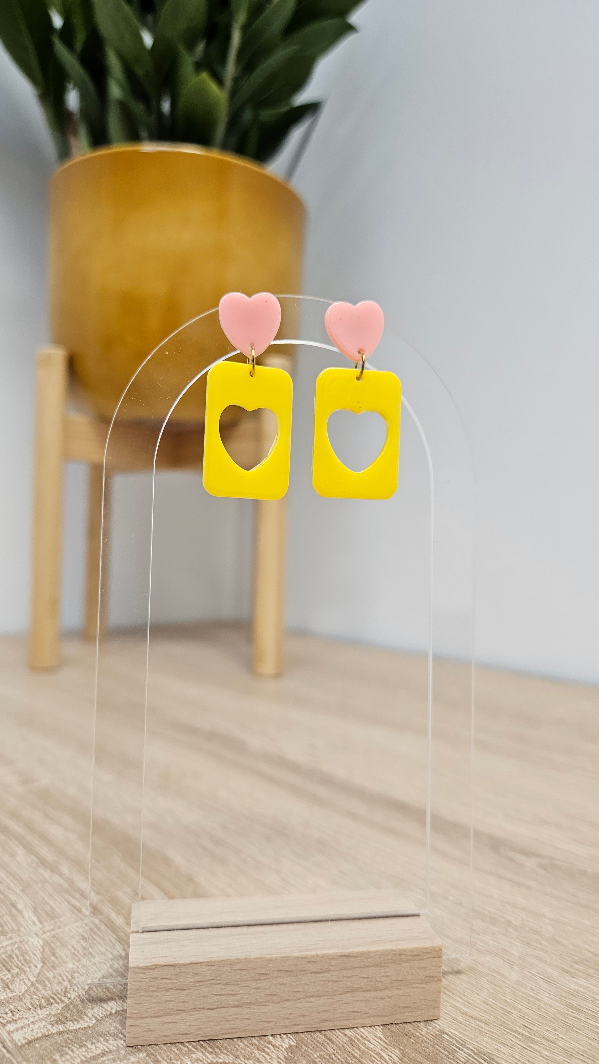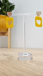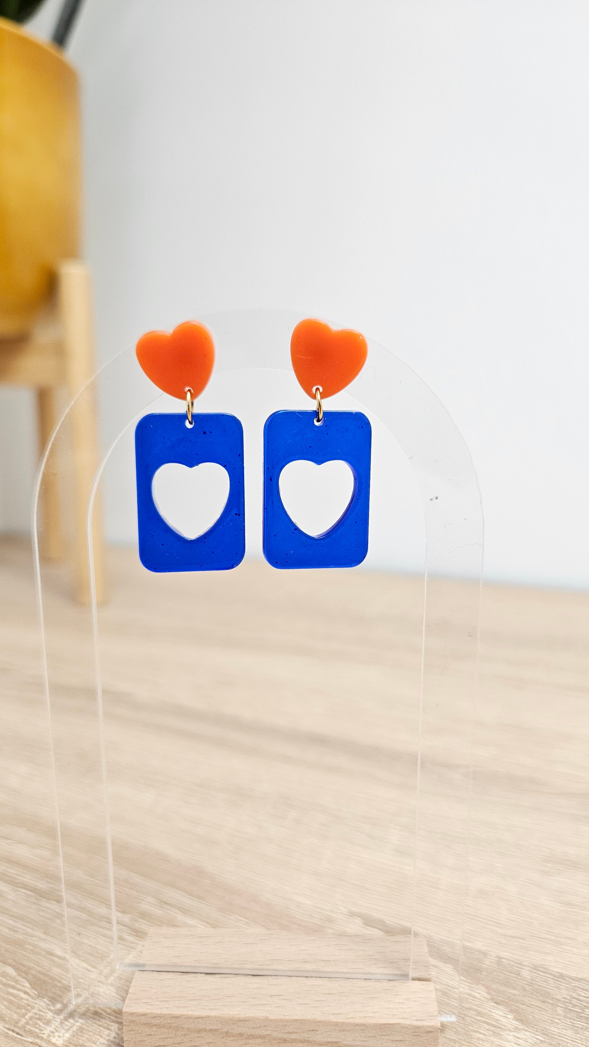 En résine Bio, paillettes végétales ou biodégradables et clou d'oreille en acier inoxydable.