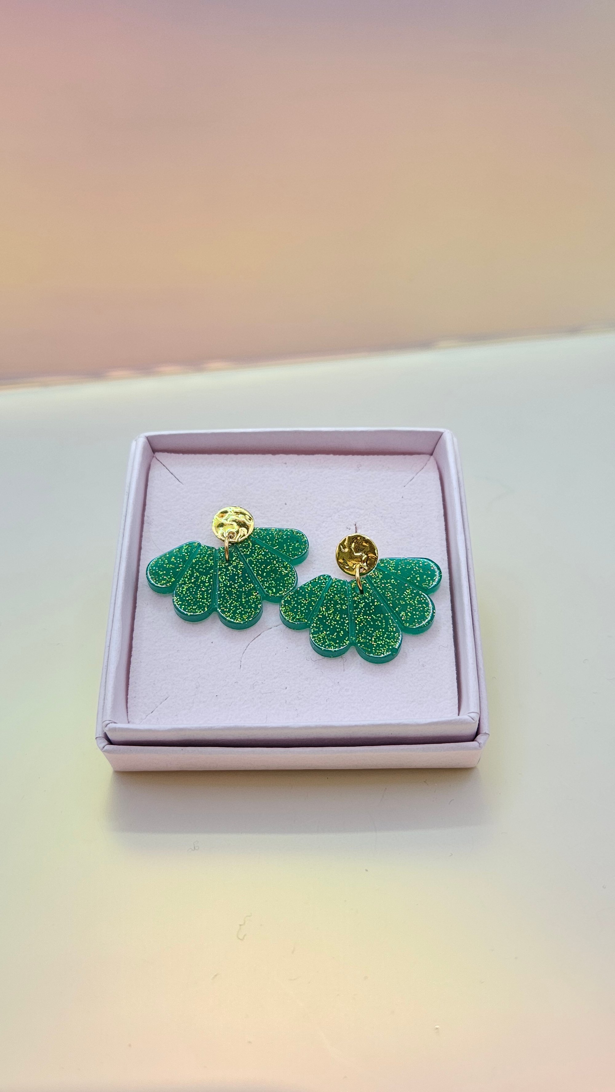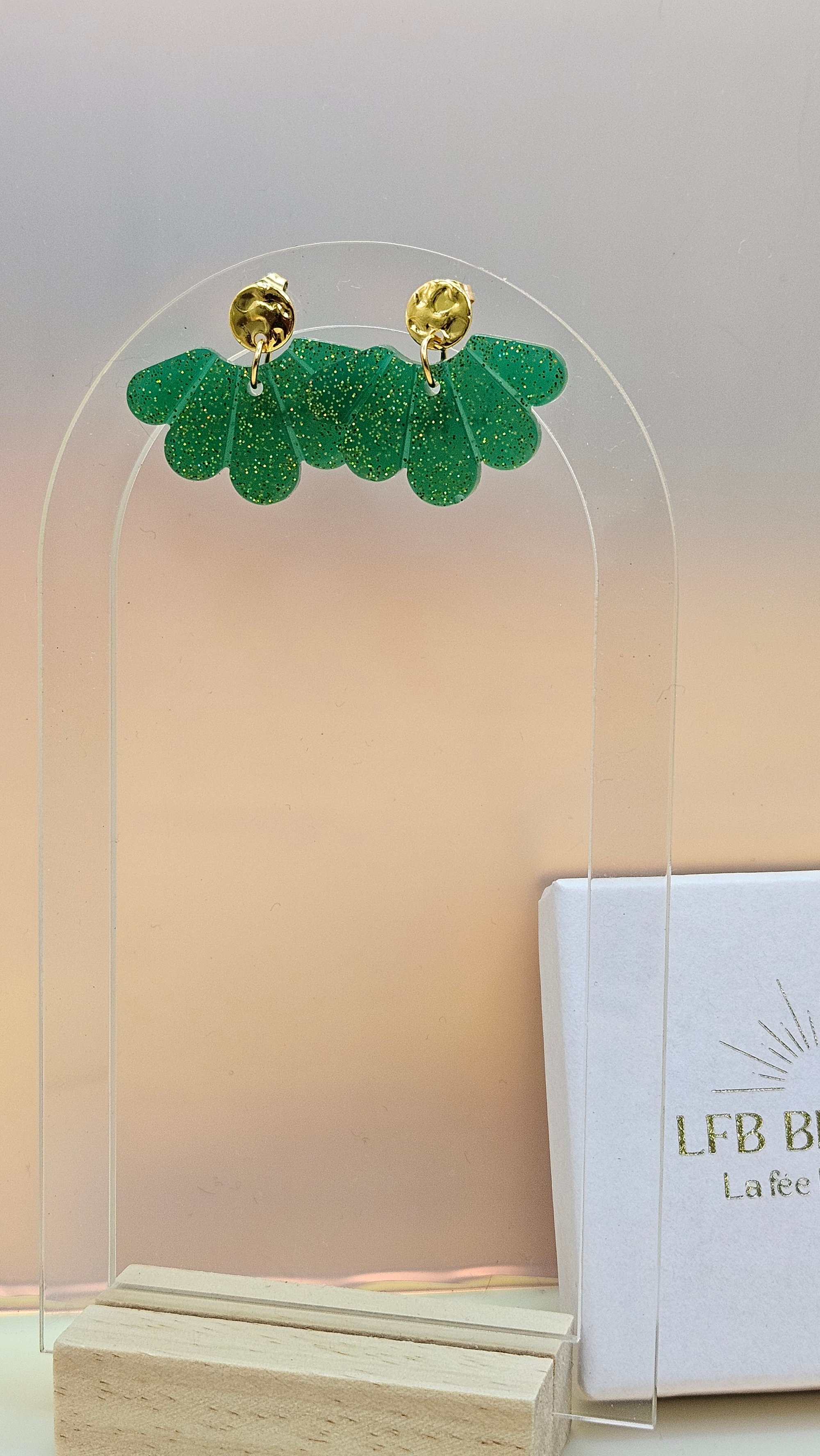 En résine Bio et les clous d'oreilles doré à l'or fin.