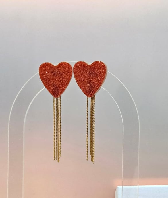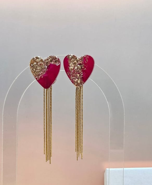 En résine Bio, paillettes végétales ou biodégradables et clou d'oreille en acier inoxydable.