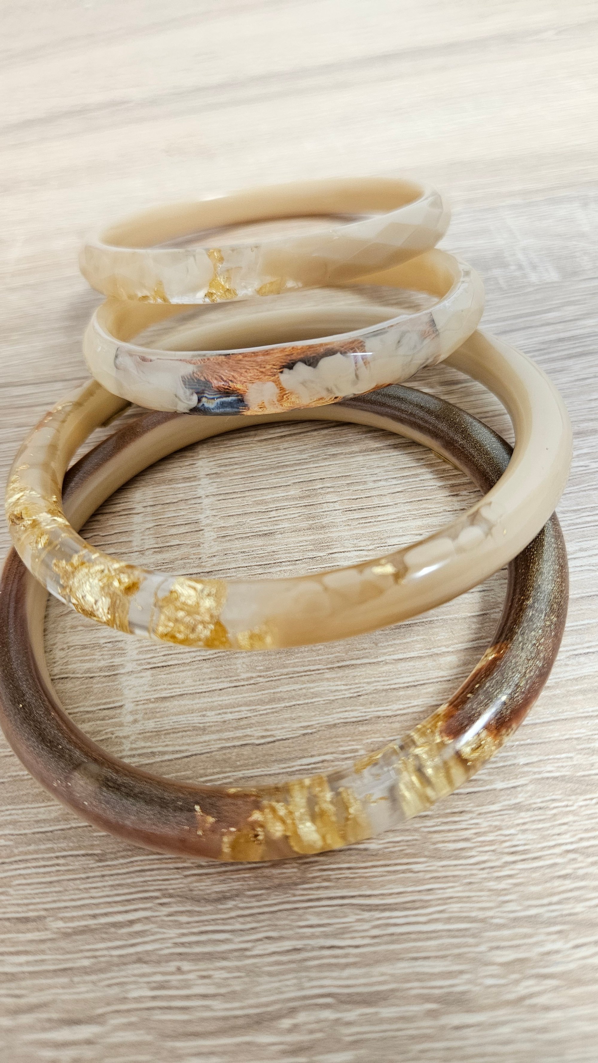 Chaque bracelet est unique et fait entièrement à la main en resine bio.