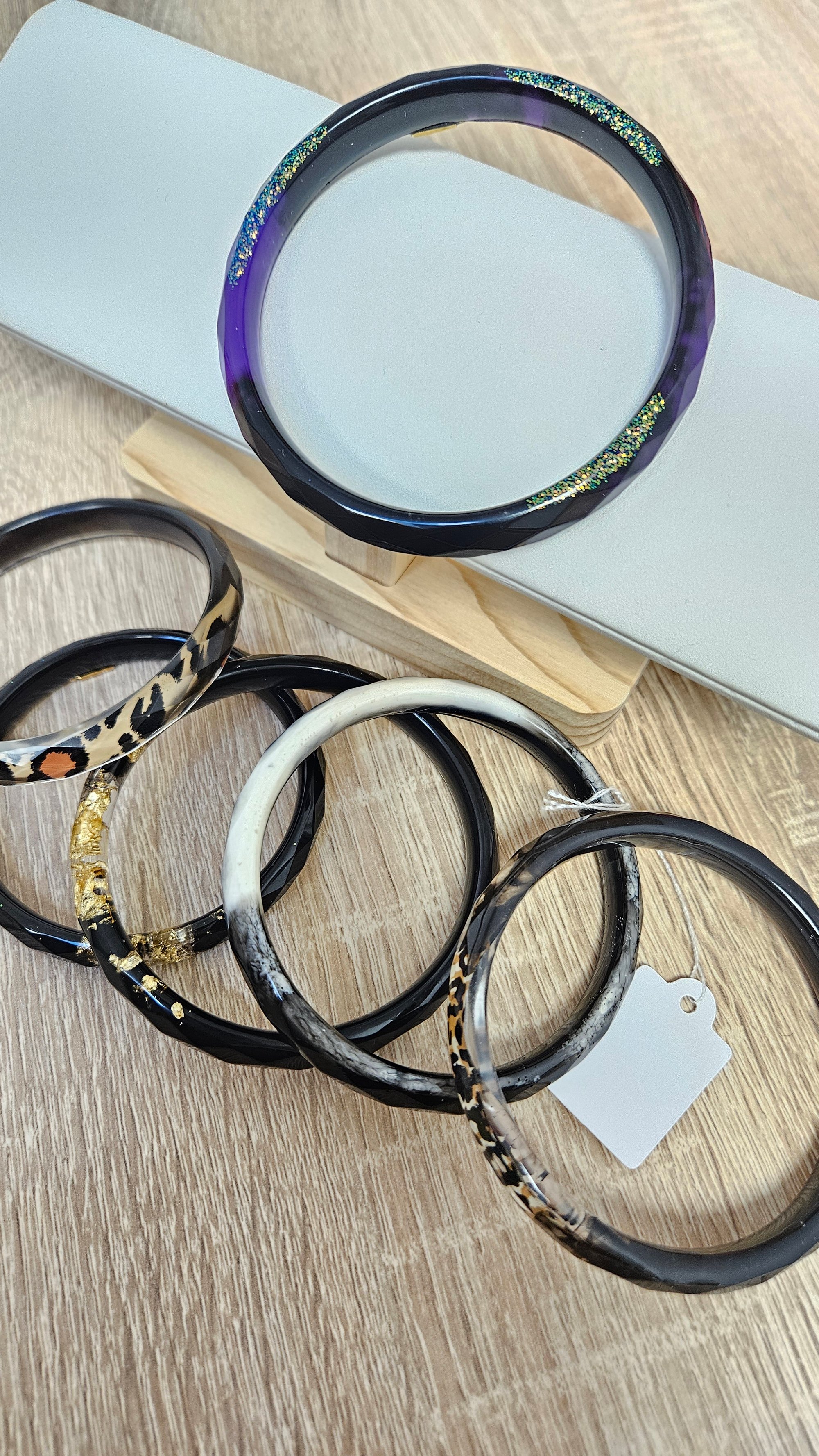 Chaque bracelet est unique et fait entièrement à la main en resine bio.