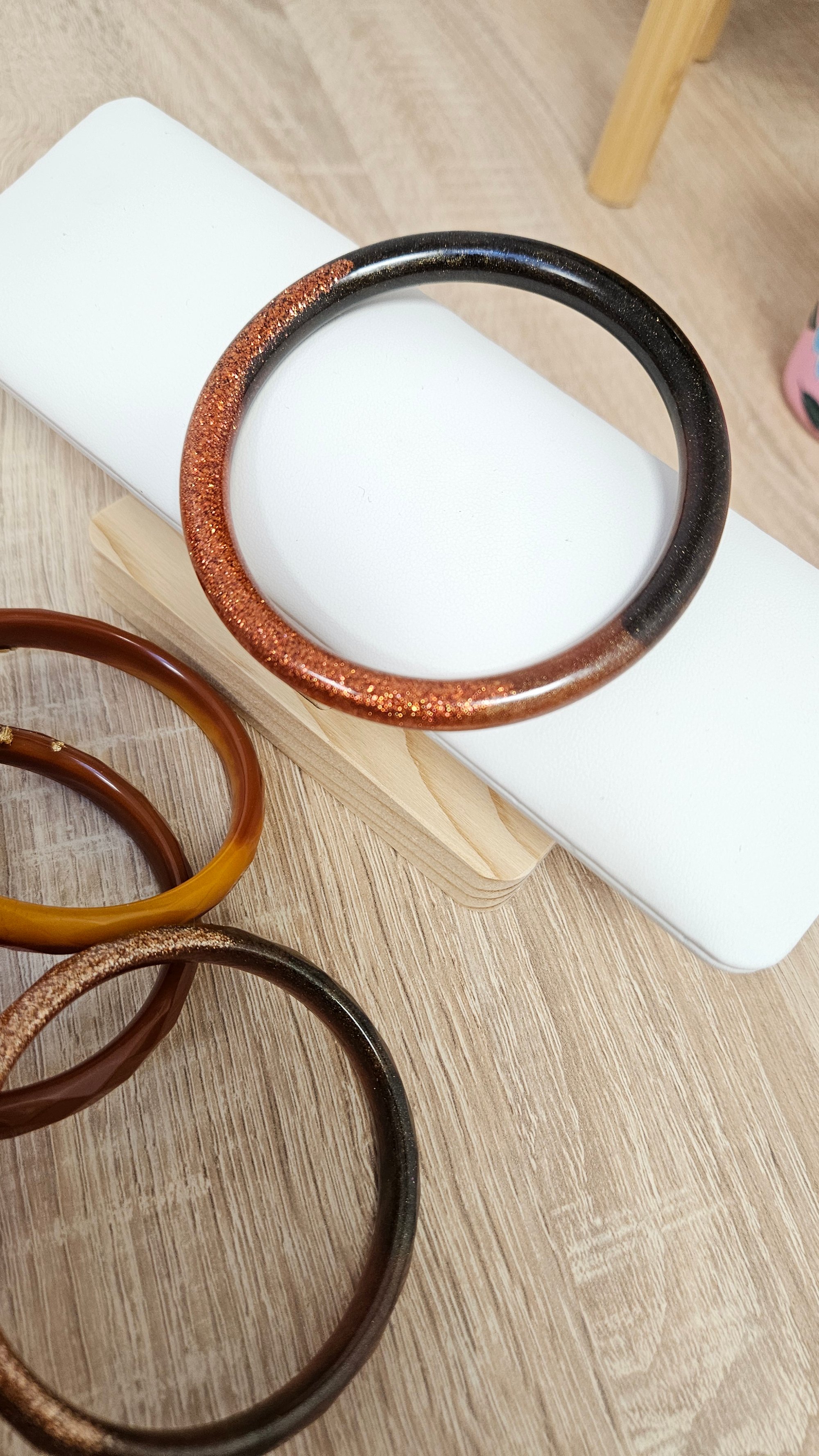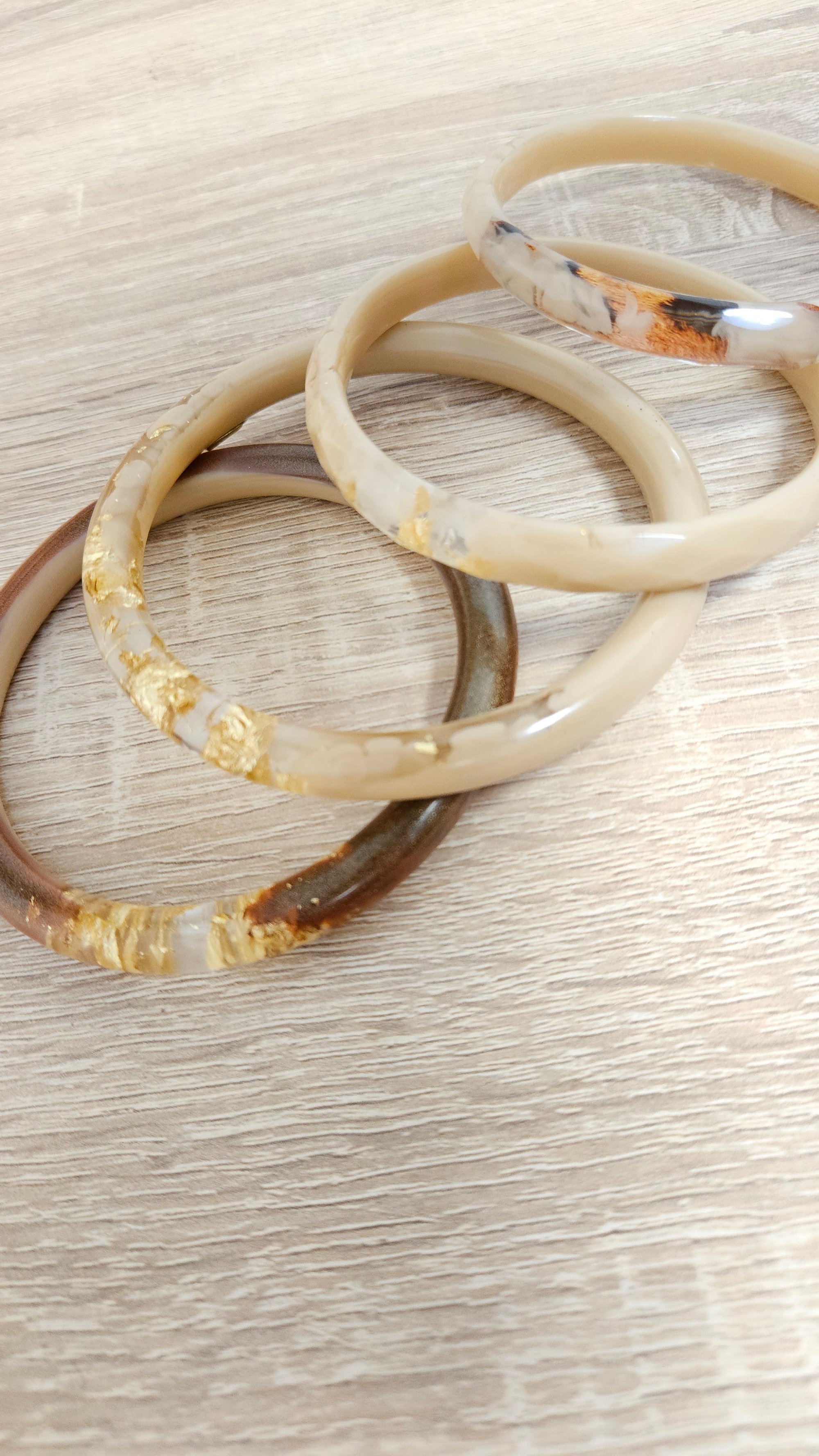 Chaque bracelet est unique et fait entièrement à la main en résine bio.