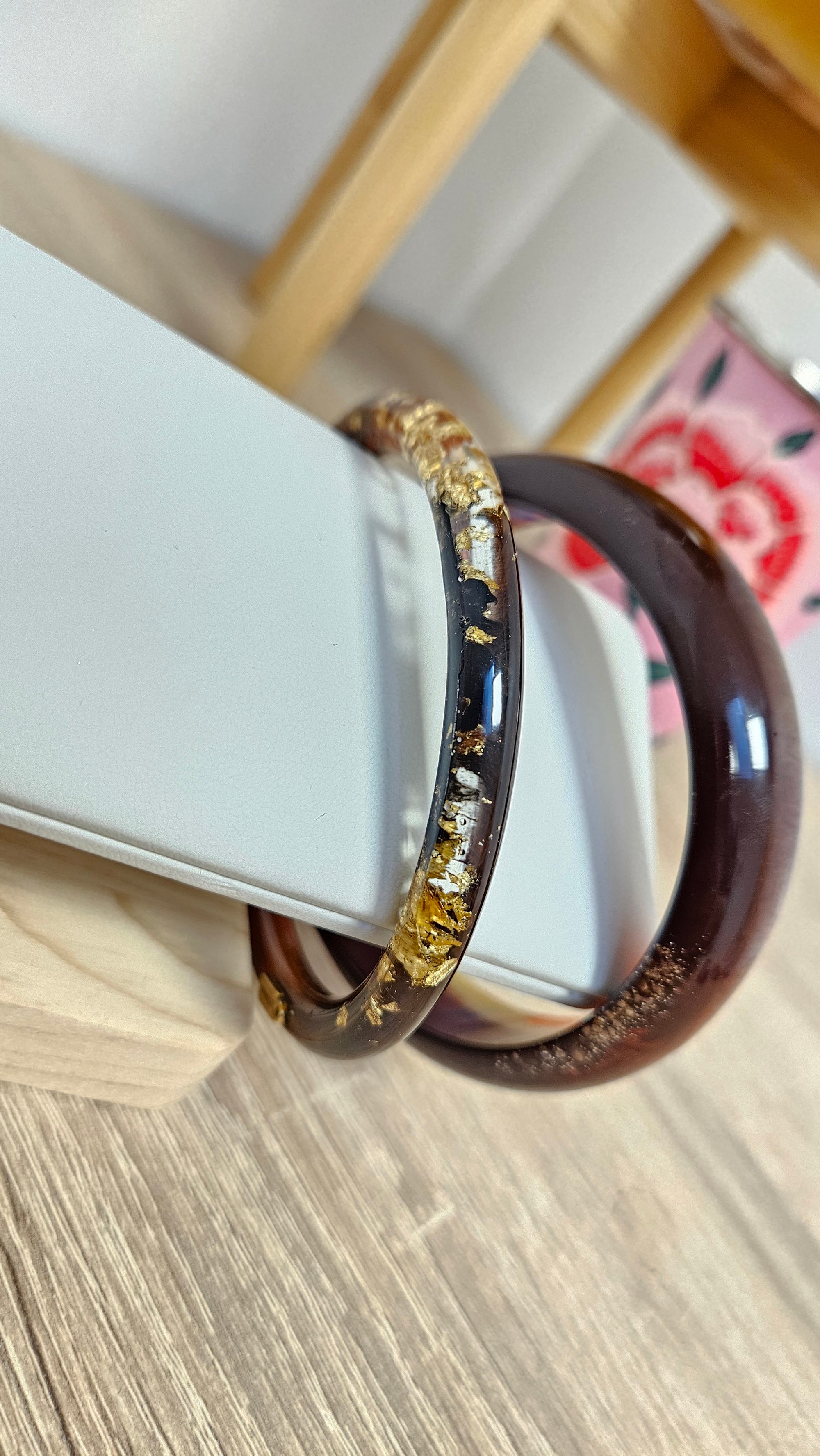 Chaque bracelet est unique et fait entièrement à la main en résine bio.
