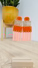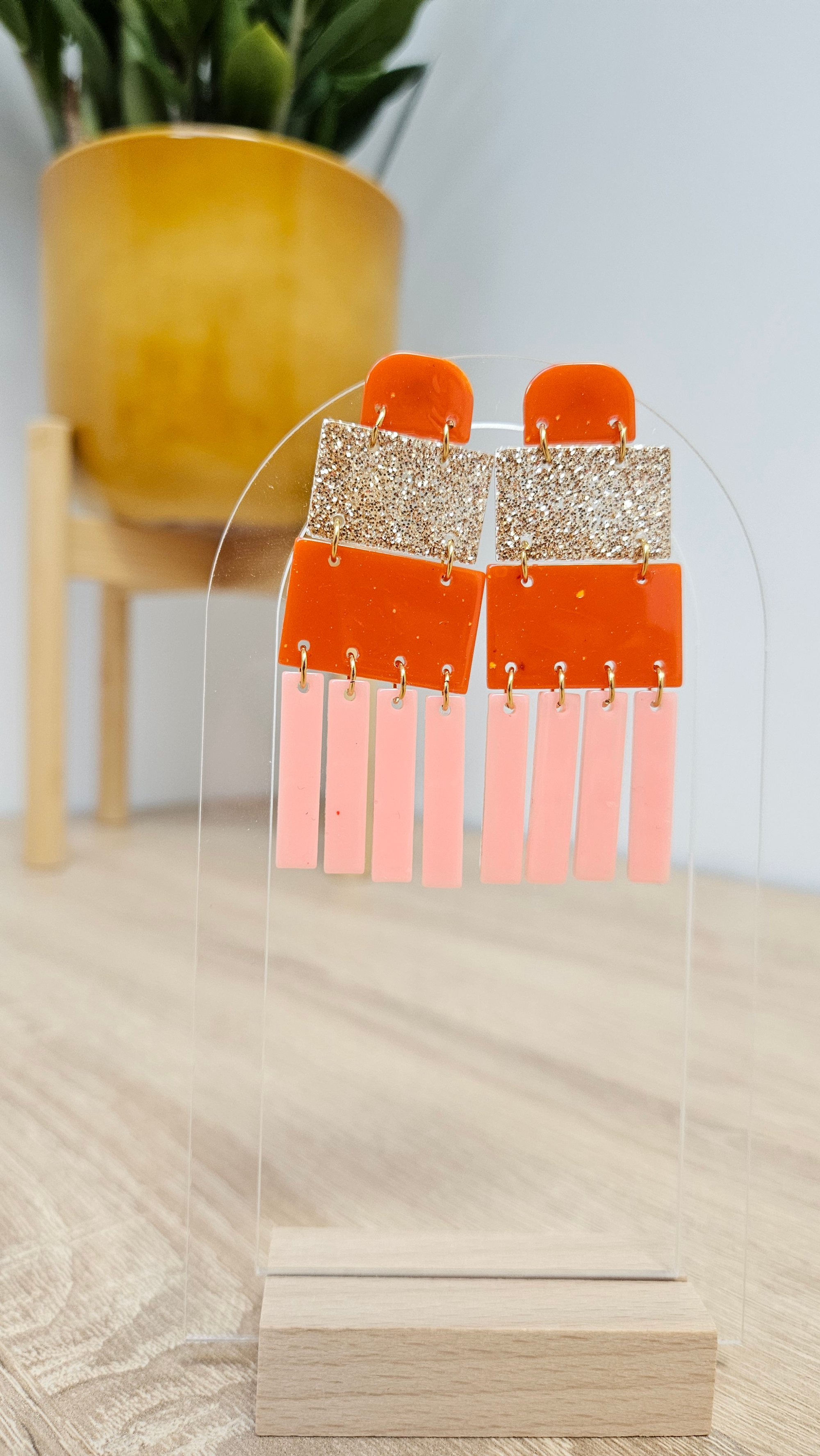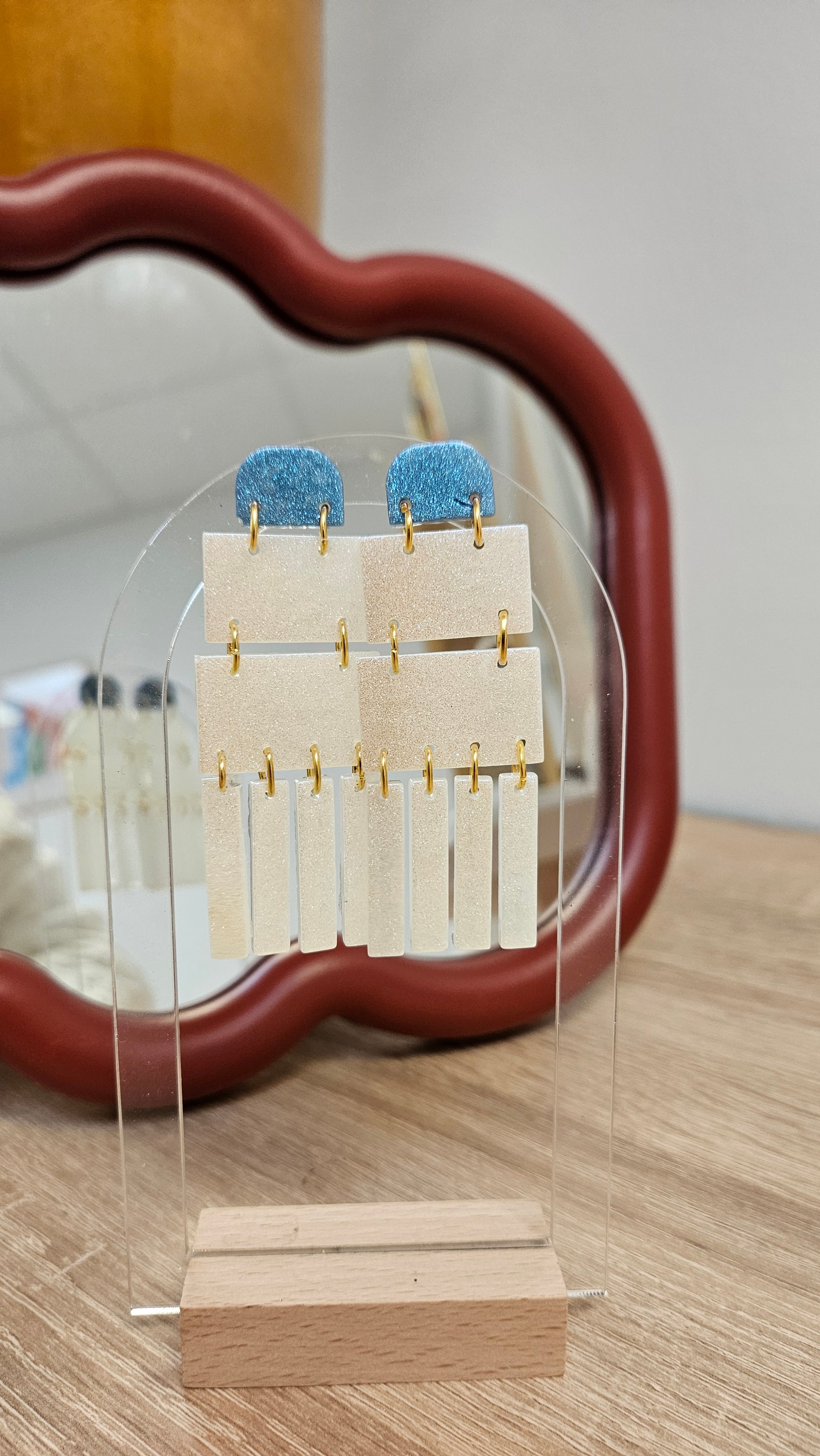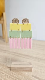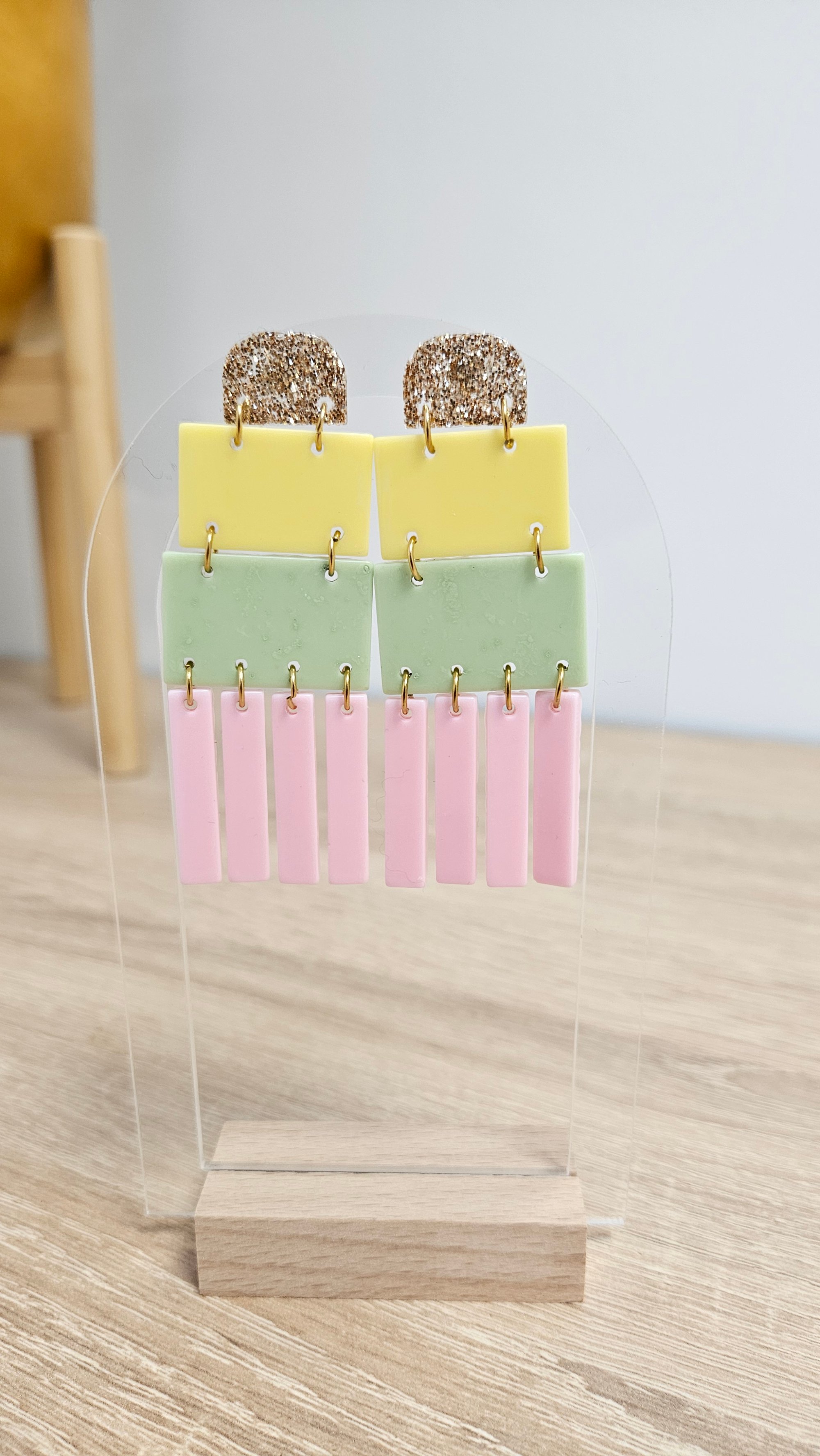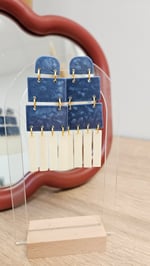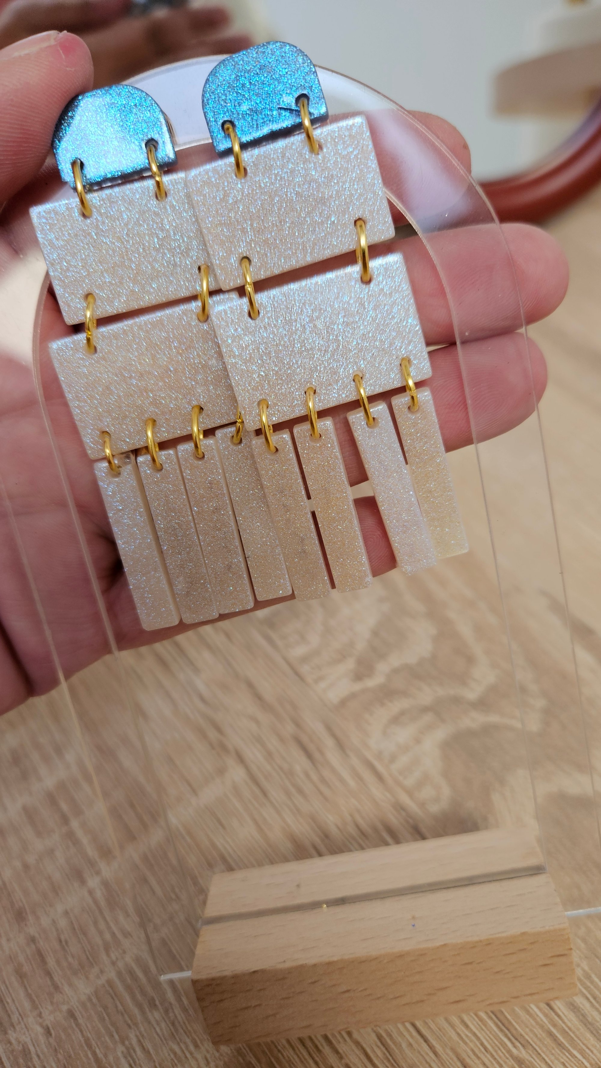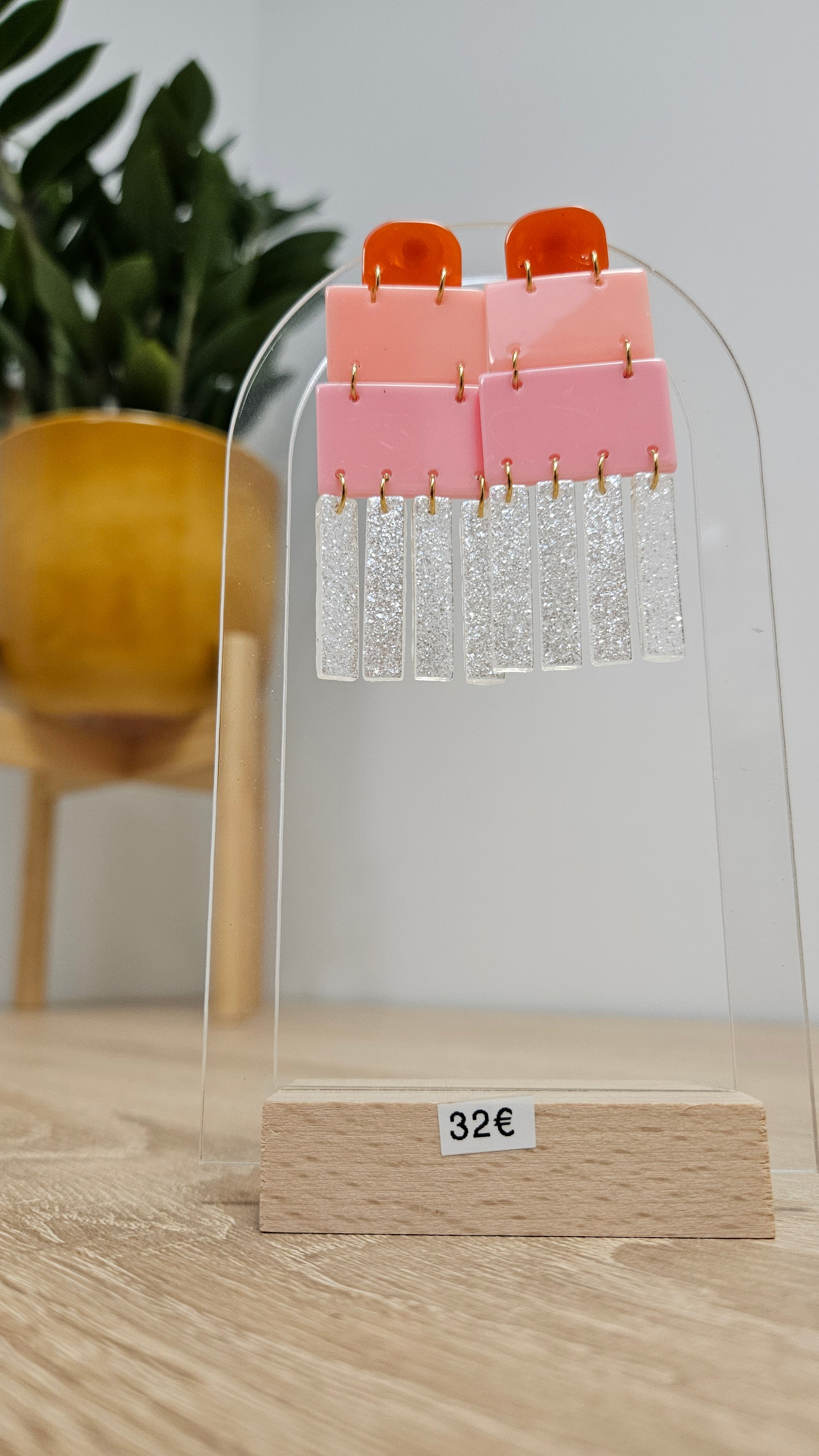 En résine Bio, pigments naturels, paillettes végétales ou biodégradable ou mica. Son attache en acier inoxydable est idéale même pour les plus sensibles.