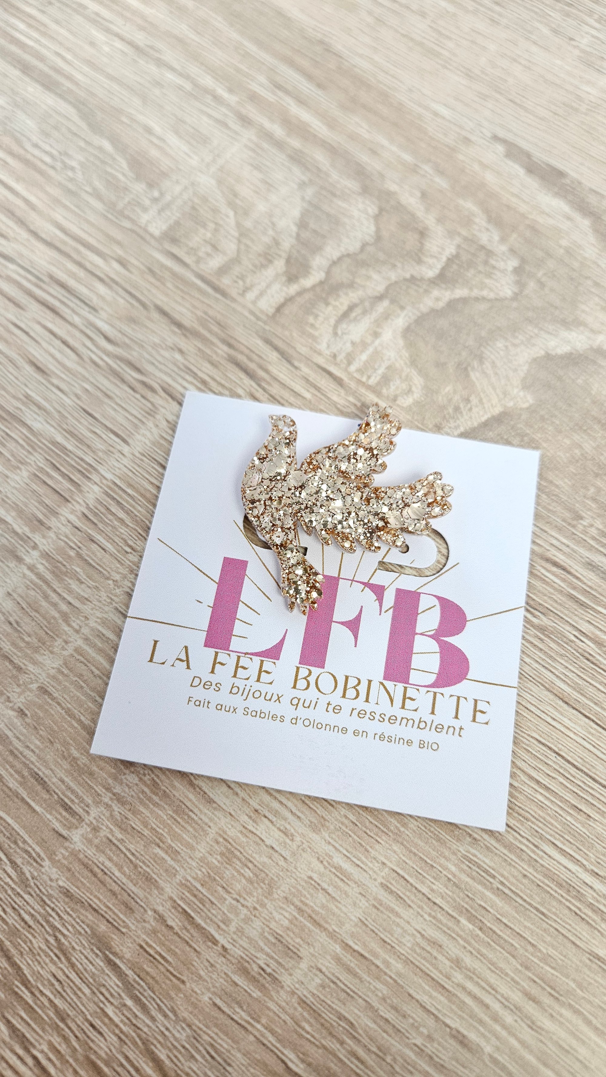 Fait en résine bio et paillettes végétales.