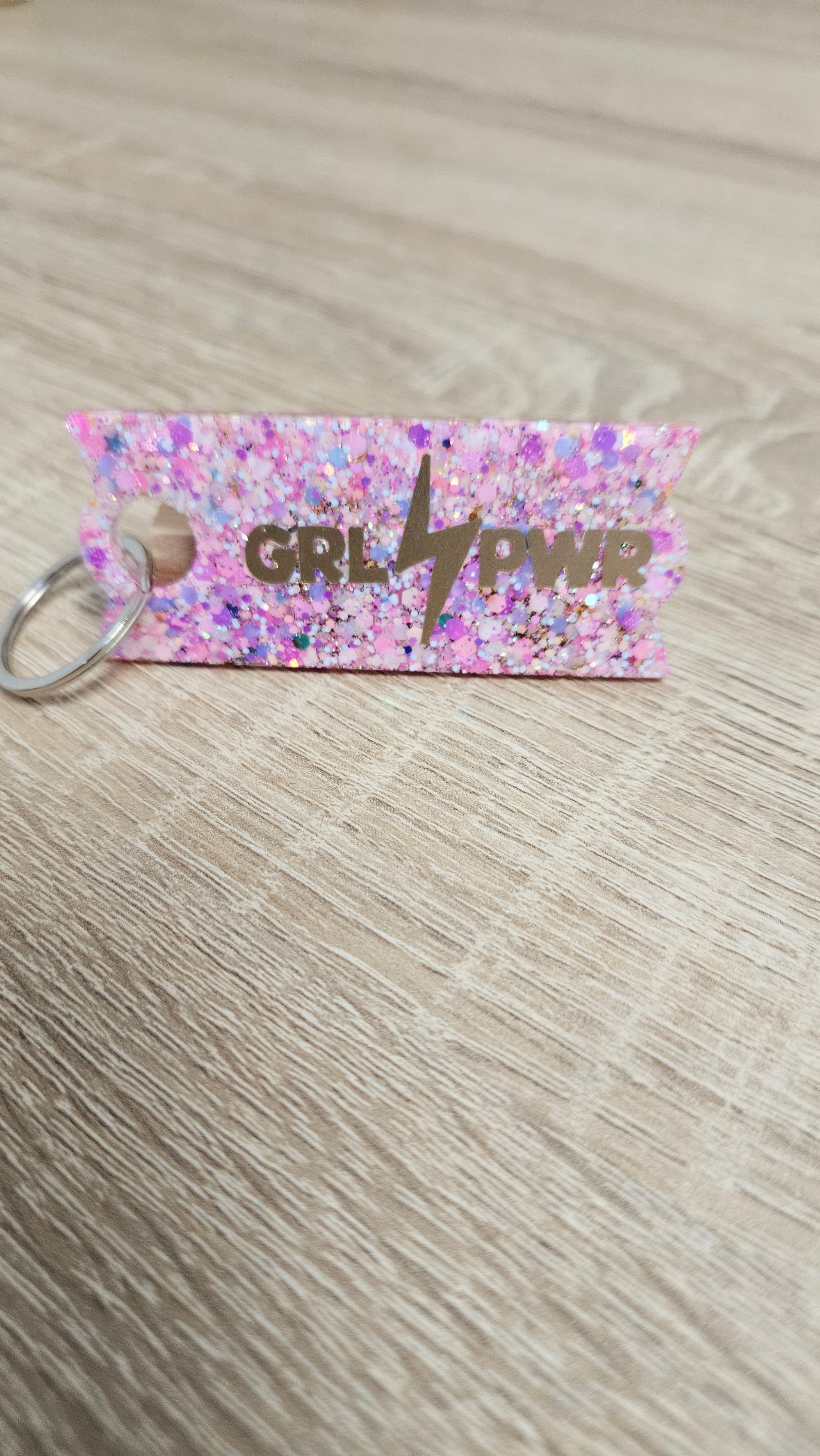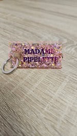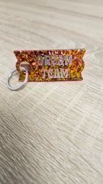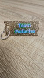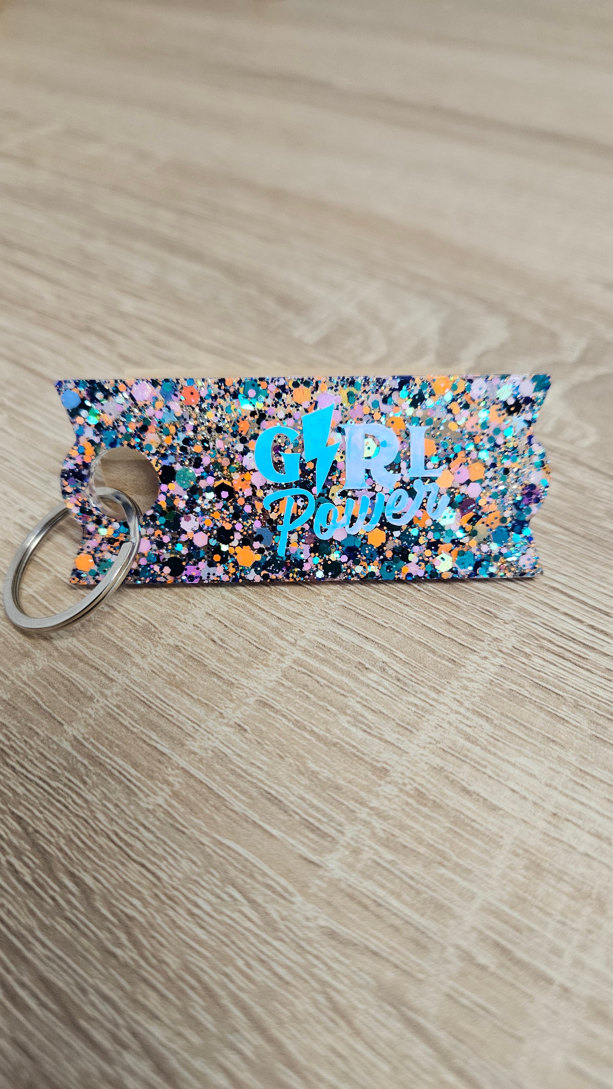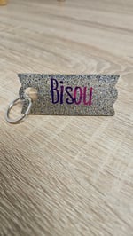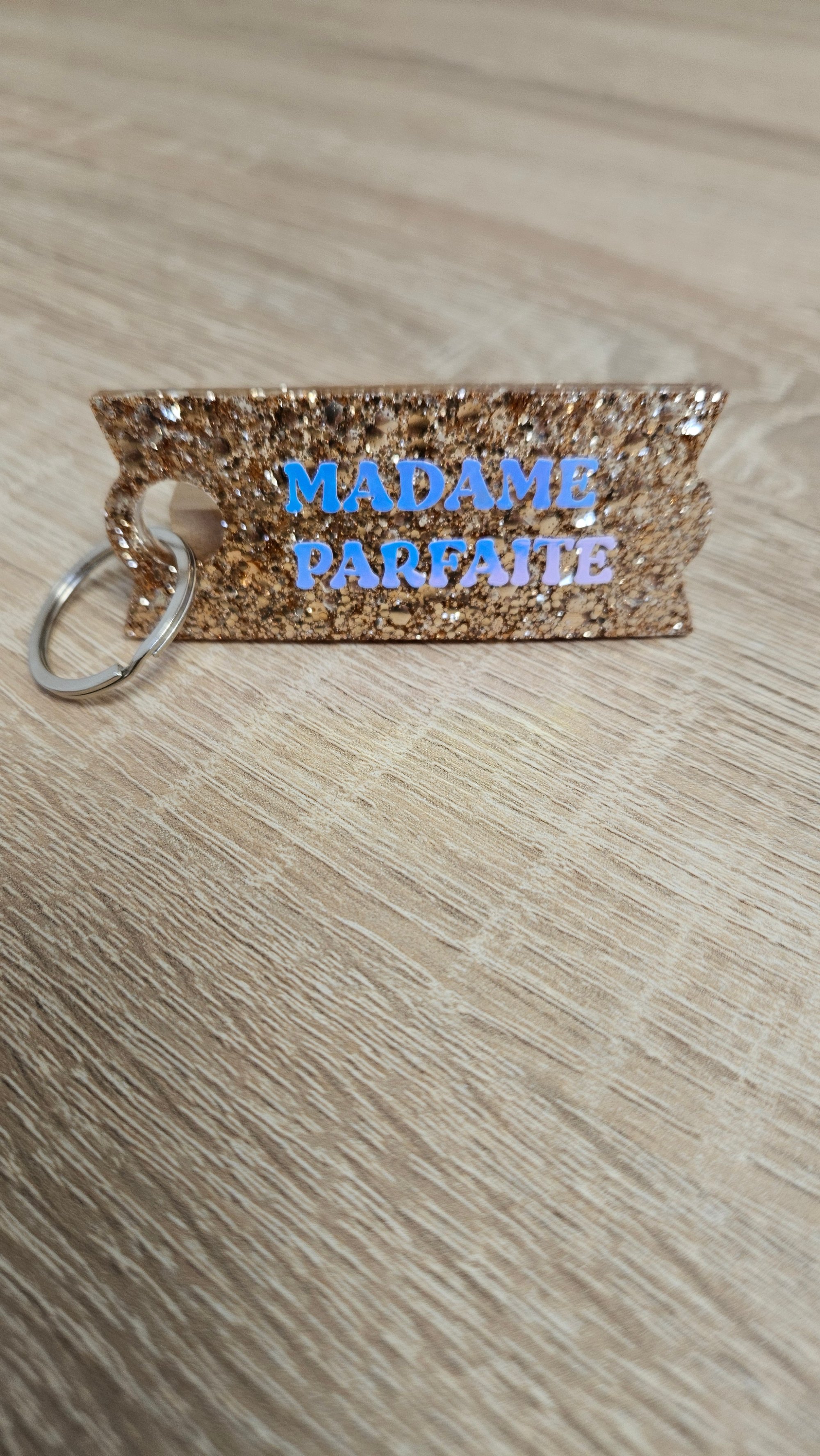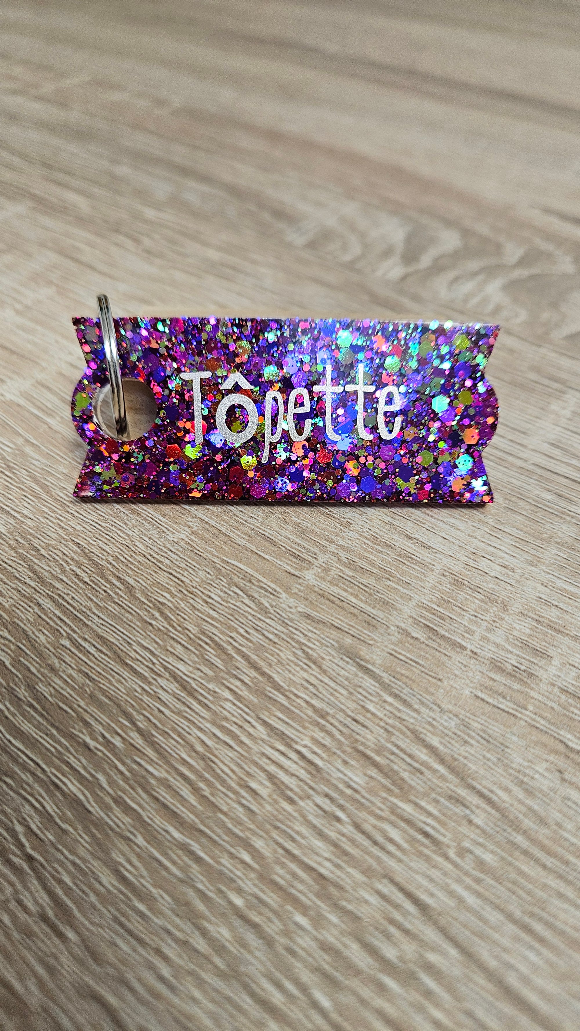 Porte-clés en résine bio et paillettes végétales ou biodégradables.