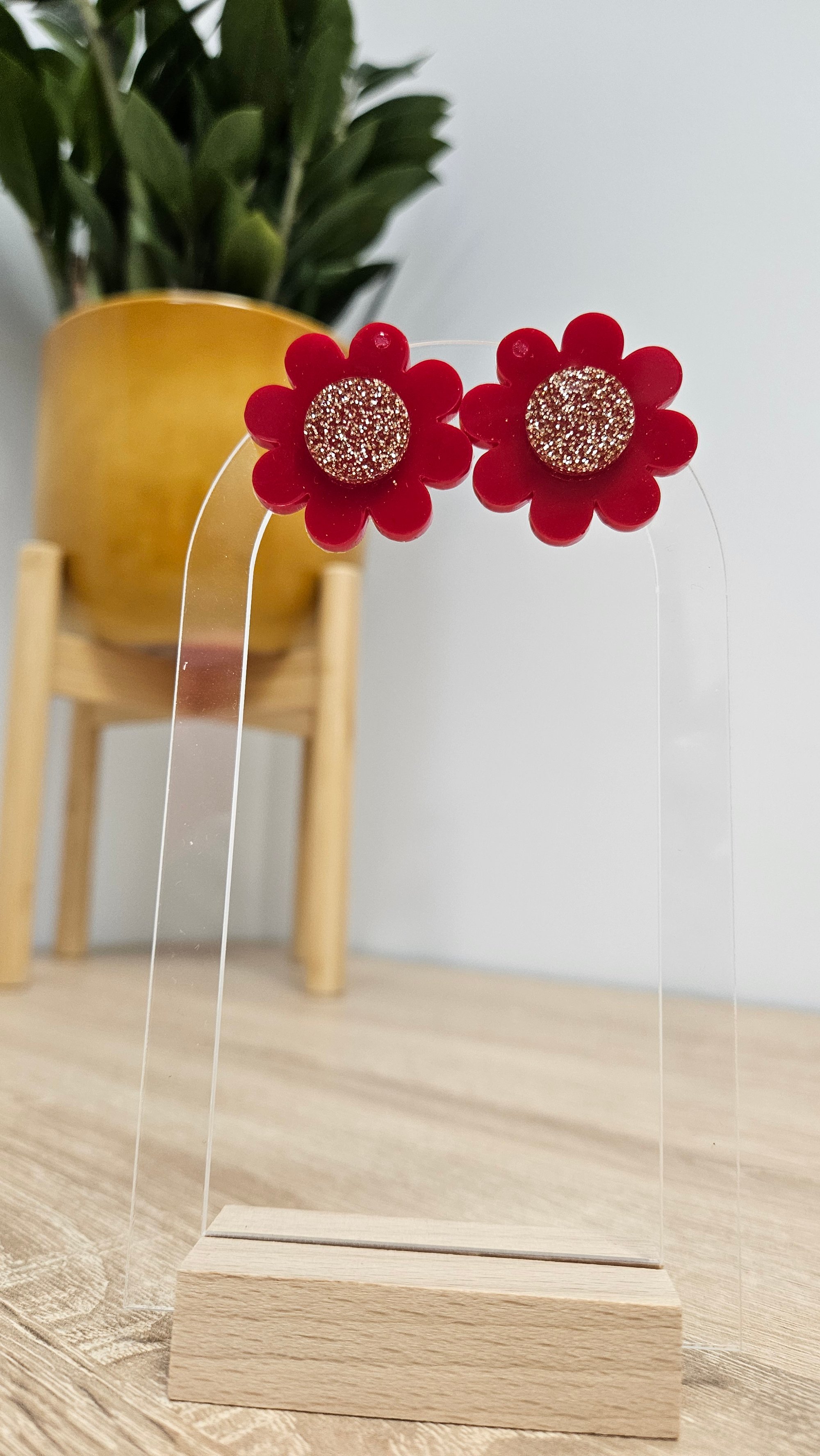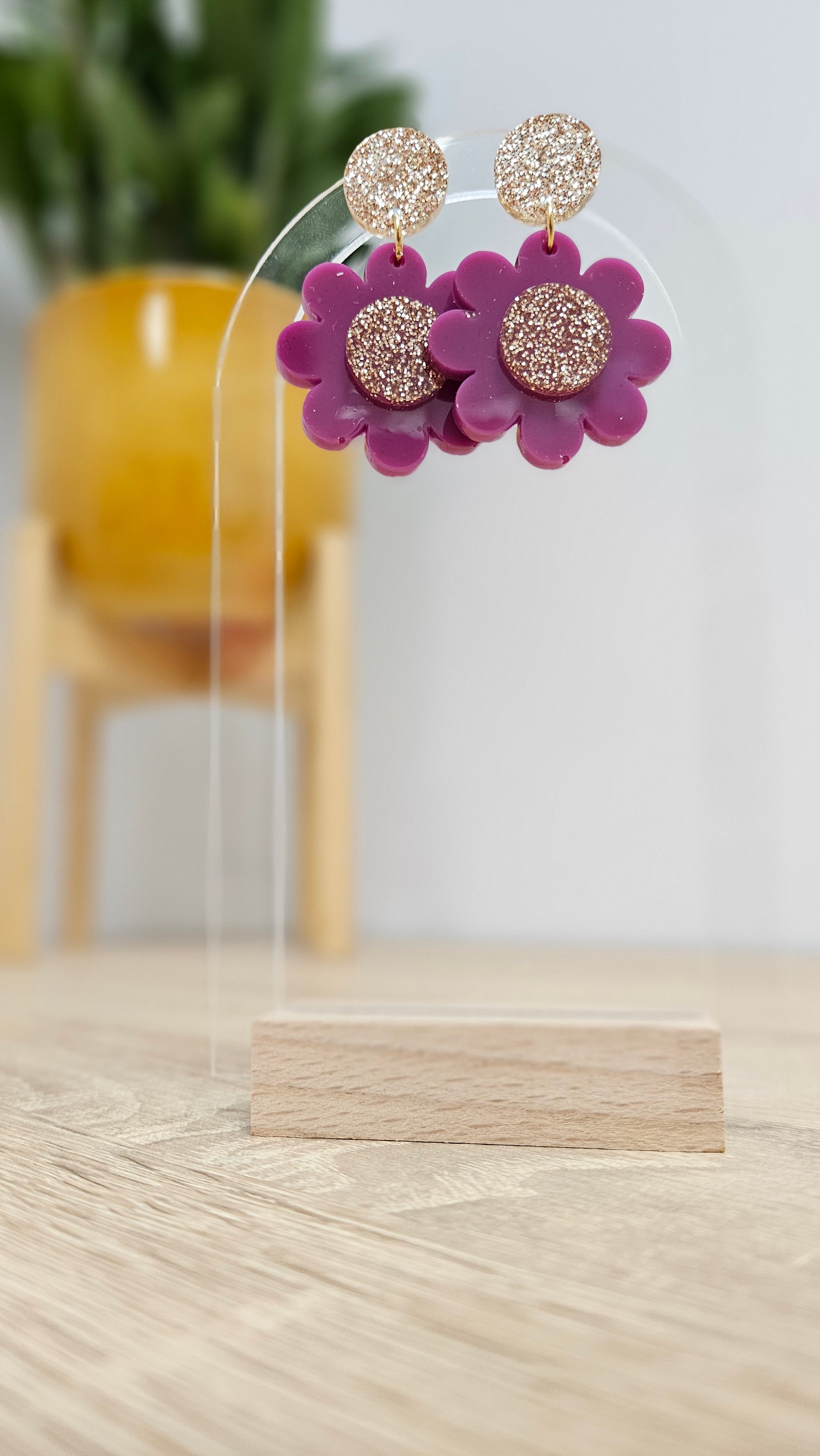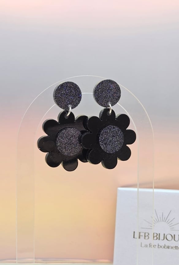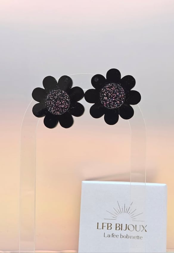 En résine Bio et paillettes végétales. Clou d'oreille en acier inoxydable.