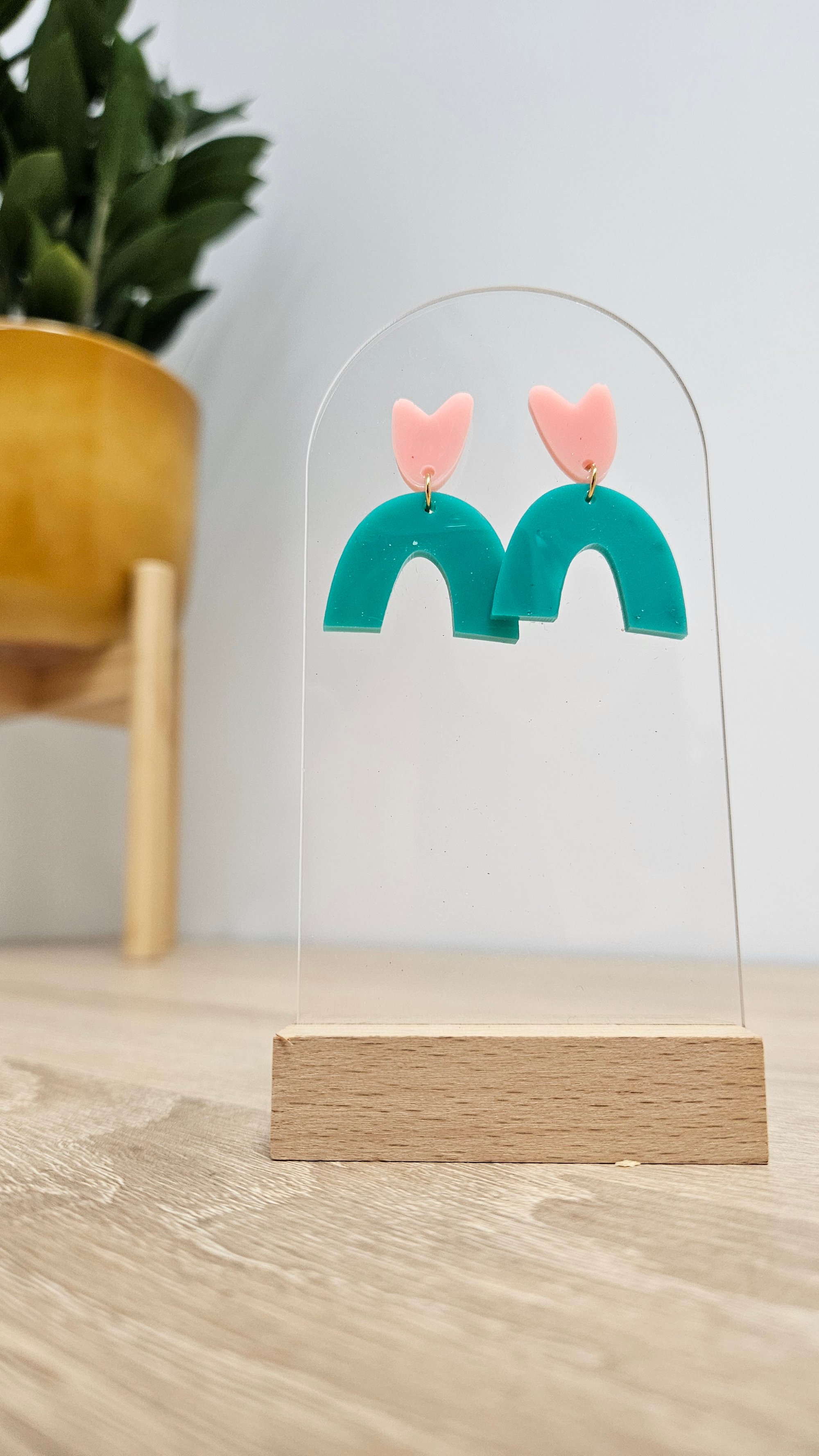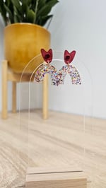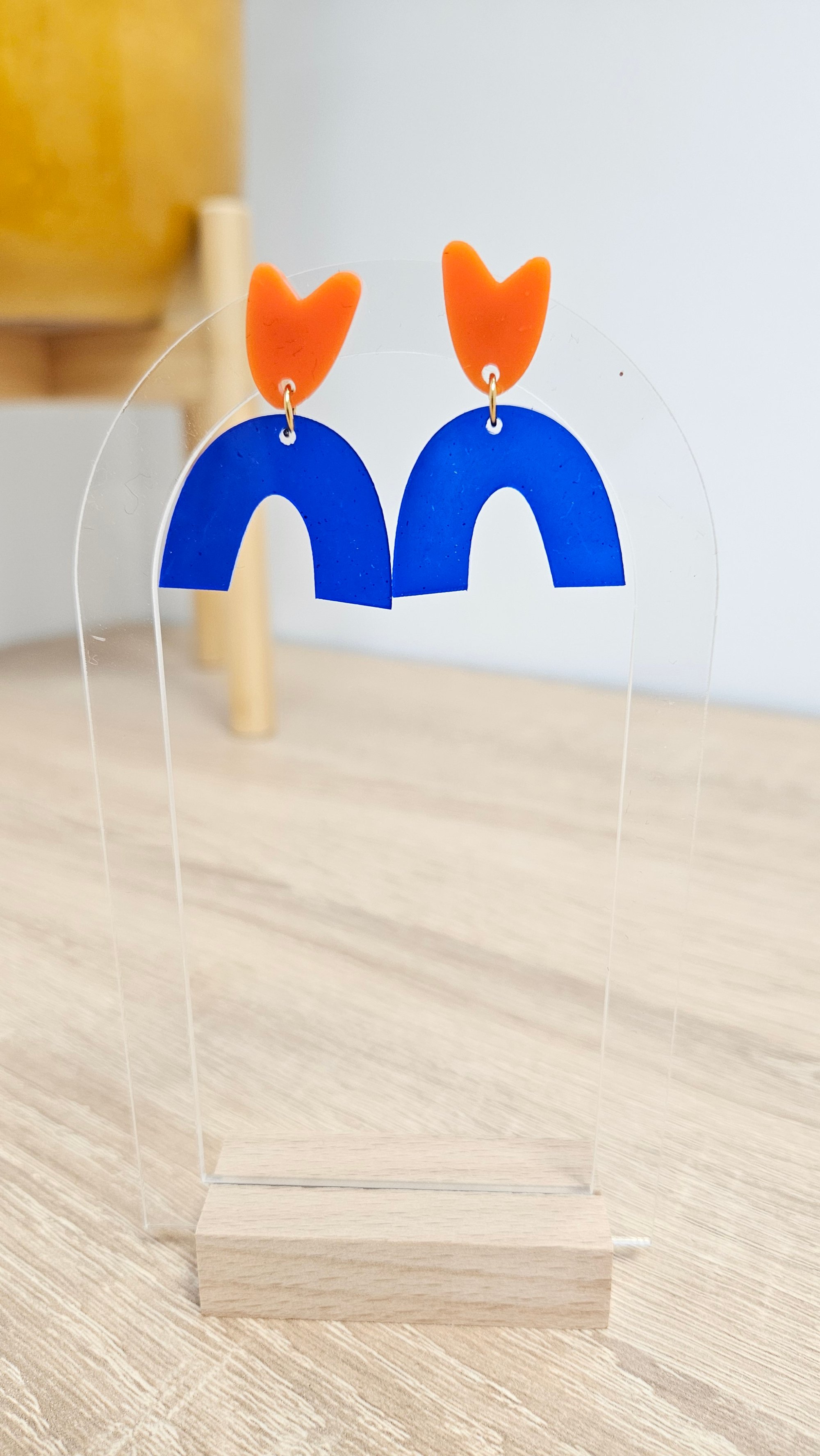 En résine Bio, paillettes végétales ou biodégradables et clou d'oreille en acier inoxydable.